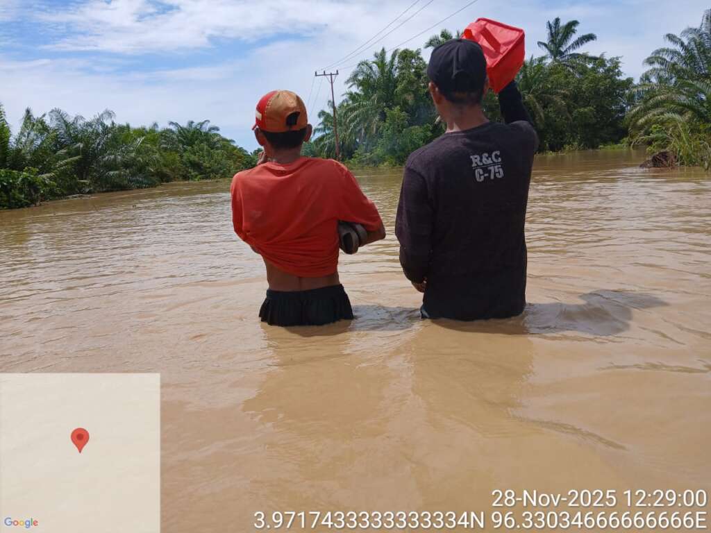 Warga terisolasi karena kampung berubah menjadi sungai. Akses jalan lumpuh total. Bantuan bagi warga yang terisolasi disalurkan menggunakan uluran kabel yang dibentangkan di atas Daerah Aliran Sungai (DAS) Krueng Beutong yang kini terpecah menjadi tiga jalur.