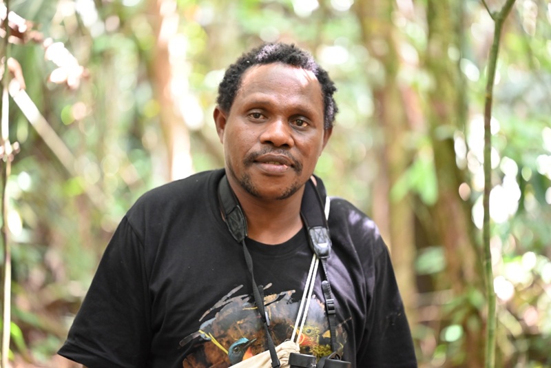 Empat pemandu lokal mendampingi kami, yakni Joshua Fami, Edison Fami dan dua orang bernama Luther. Joshua yang tubuhnya paling besar, memimpin perjalanan sejauh tiga kilometer. Di beberapa titik kami menemukan pegangan kayu dan juga batang pohon sebagai jembatan penyeberang anak sungai. Butuh waktu satu jam menelusuri hutan dengan tanah berlumpur hingga akhirnya kami tiba di pos pertama tempat pengamatan cenderawasih kawat 12.