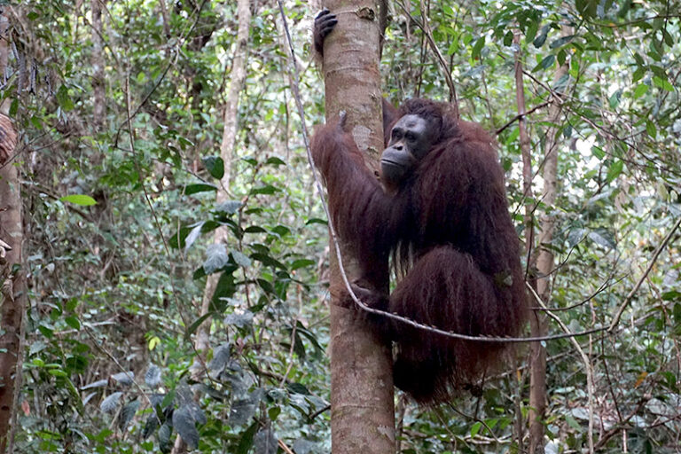 Setelah sekitar dua jam keluar dari kandang transportasi, Sally, orangutan Kalimantan (Pongo pygmaeus) mulai memanjat pohon setinggi kurang lebih lima meter. Ia seakan berupaya ‘mengamati’ rumah barunya. Kepala ke kiri dan ke kanan, belum bergerak ke mana-mana. Pada Agustus lalu, Sally pindah rumah sementara ke hutan transit Juq Kehje Sewen, setelah lebih 10 tahun tinggal di Pusat Rehabilitasi Borneo Orangutan Survival Foundation (BOSF) Samboja Lestari di Kutai Kartanegara, Kabupaten Kutai Timur, Kalimantan Timur.