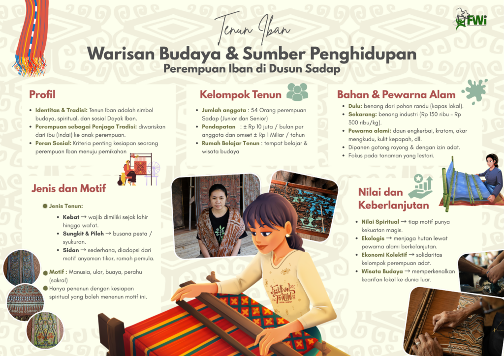 Infografis berikut akan mengajak kita menyelami lebih dalam bagaimana Tenun Iban menjadi jembatan yang menghubungkan nilai spiritual, kelestarian ekologi, dan ekonomi kolektif.